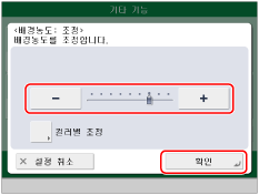 [-] 또는 [+]를 눌러 배경 농도를 조정하고 → [확인]을 누릅니다.