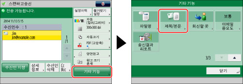 제목을 입력하지 않으면 [이메일/I-팩스 설정]의 [생략시 제목]에서 설정한 기본 제목이 사용됩니다. (See "생략시 제목.")