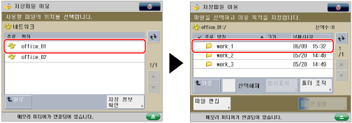 폴더에 두 개 이상의 문서가 저장된 경우 [명칭]이나 [날짜/시각]을 눌러 파일 리스트를 정렬할 수 있습니다.