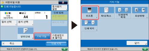 이 모드는 네트워크에 있는 다른 imageRUNNER ADVANCE 기기의 고급 박스 또는 메모리 미디어에 저장된 파일을 인쇄하는 데만 사용할 수 있습니다.
