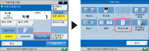 이 모드는 네트워크에 있는 다른 imageRUNNER ADVANCE 기기의 고급 박스 또는 메모리 미디어에 저장된 파일을 인쇄하는 데만 사용할 수 있습니다.