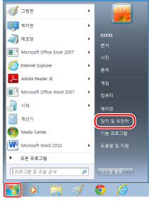 ] (시작) → [장치 및 프린터]를 클릭합니다.