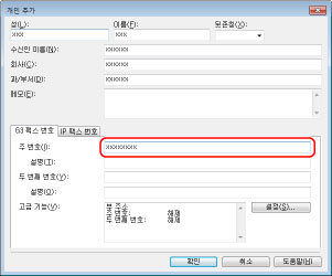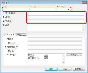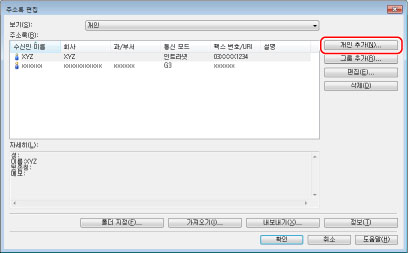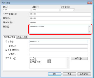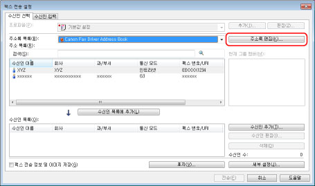 이전에 등록한 개인 주소를 편집할 수도 있습니다. 자세한 내용은 팩스 드라이버 창 오른쪽 하단의 [도움말]을 클릭하여 도움말을 참고하십시오.