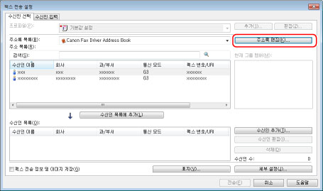 디스플레이는 사용 중인 운영 체제와 팩스 드라이버 버전에 따라 달라질 수 있습니다.