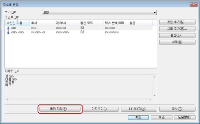 [주소록 편집] 대화상자에서 [폴더 지정]을 클릭합니다.