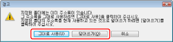 3단계에서 선택한 폴더에 이미 주소록이 있으면 다음 메시지가 표시됩니다. 기존 주소록을 사용하려면 [그대로 사용]을 클릭하고, 팩스 드라이버의 주소록을 사용하려면 [덮어쓰기]를 클릭합니다.
