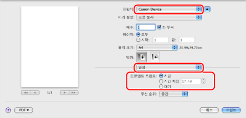 문서를 전송할 시간과 우선 순위를 지정할 수 있습니다.