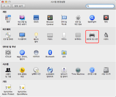 [시스템 환경설정]을 열고 → [프린트 및 스캔](또는 [프린트 & 팩스])을 클릭합니다.