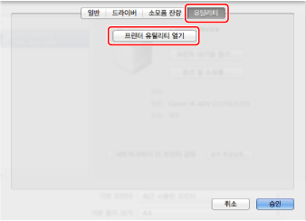 [유틸리티] → [프린터 유틸리티 열기]를 클릭합니다.