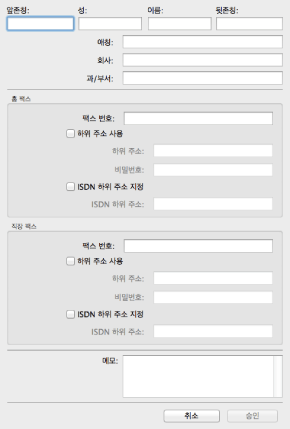 이름([성] 또는 [이름])과 팩스 번호([홈 팩스] 또는 [직장 팩스])를 지정해야 합니다.