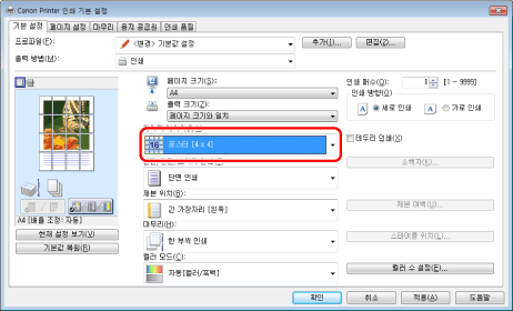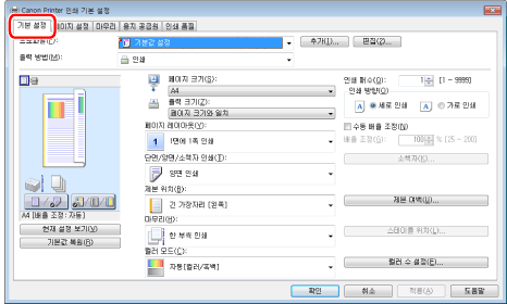 화면은 운영 체제와 프린터 드라이버의 종류 및 버전에 따라 다를 수 있습니다.