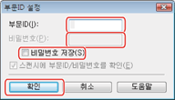 [비밀번호 저장]을 선택하고 → 부문 ID 및 비밀번호를 입력한 후 → [확인]을 클릭합니다.