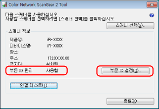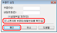 [스캔시에 부문ID/비밀번호를 확인]을 선택하고 → [확인]을 클릭합니다.
