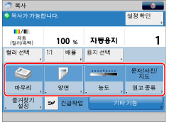 복사 화면에 표시되는 단축키에서 모드를 등록할 수 있습니다. [기타 기능] 및 [즐겨찾기 설정]에서 원하는 키를 다섯 개까지 등록할 수 있습니다.