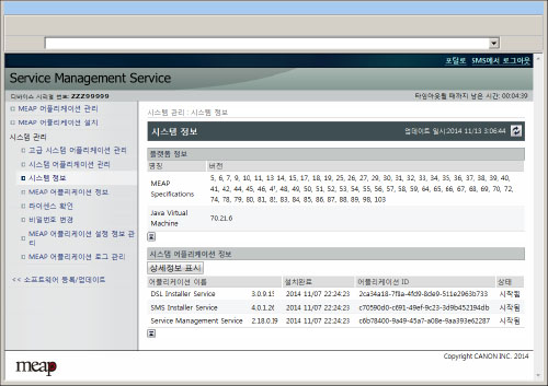 플랫폼(예를 들어, Java Virtual Machine)과 관련된 버전 데이터, 시스템 응용 프로그램의 버전 데이터, 설치일 및 현재 상태 등을 확인할 수 있습니다.
