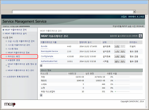 설치된 라이센스 파일의 내용을 표시할 수 없습니다.