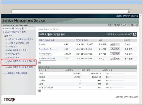 [MEAP 어플리케이션 설정 정보 관리]를 클릭합니다.