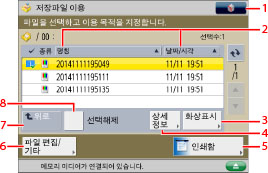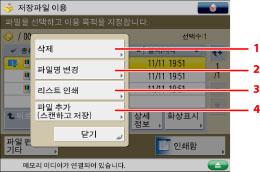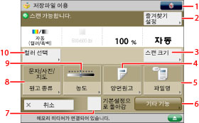 [파일 추가 (스캔하고 저장)]와 관련된 절차 및 스캔 화면에서 조작에 대한 사항은 "파일 추가(스캔하고 저장)" 및 "스캔하고 저장 조작 순서."를 참고하십시오.