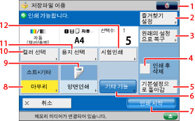 용지 크기/종류 및 급지 위치를 선택할 때 누릅니다. |
