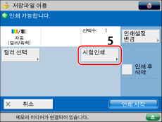 (숫자 키)를 눌러 인쇄 부수를 입력하고 → [시험인쇄]를 누릅니다.