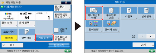 [부수번호 인쇄], [스탬프] 또는 [날짜인쇄] 중 2가지를 설정하여 동일한 위치에서 인쇄한 경우