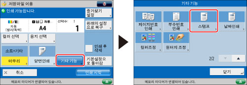 [페이지번호 인쇄/스탬프의 문자열 등록]에 등록된 문자를 선택할 수 있습니다.(See "페이지 번호 및 스탬프에 대한 사용자 지정 문자 등록/편집/삭제.")