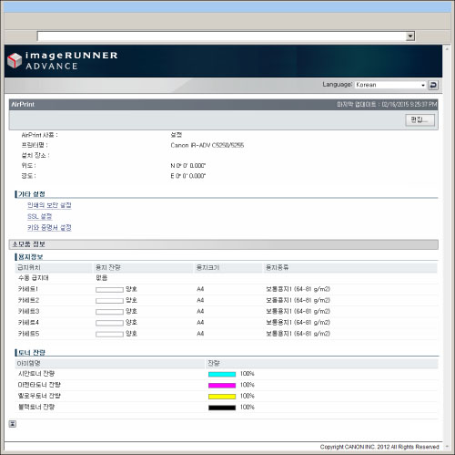 SSL에 사용한 키와 인증서를 변경할 수 있습니다. ("SSL 및 인증을 사용하여 인쇄 설정 구성" 참고)