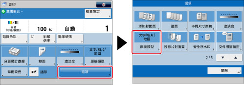 若原稿為投影片,則選擇原稿類型→將曝光調整到最適合於原稿的層級。