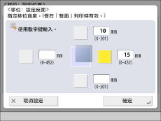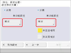 - (數字鍵)輸入正確的數值。也可以透過選擇[與正面相同]或[與正面相反]自動設定反面的移位數值。