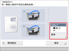 將ID卡放置在原稿台玻璃上。將ID卡放入送稿機中時不能使用「影印ID卡」模式。