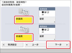 若為封面頁和/或封底頁選擇[保留空白],則本機器從在步驟3中所選的紙張來源插入一頁紙,作為封面頁和/或封底頁。