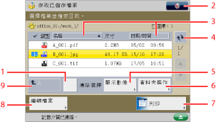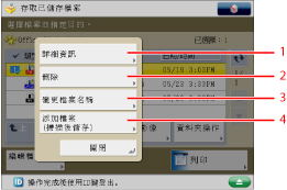 按下可以顯示用於添加檔案或顯示檔案的詳細資訊、刪除或重新命名所選檔案的功能表。