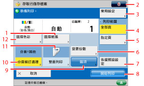 按下可以叫回「常用設定」中的列印設定或在「常用設定」中註冊常用設定。 |
