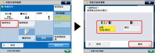 可以在[變更預設設定]中儲存色彩模式。(See "變更/初始化影印功能的預設設定.")
