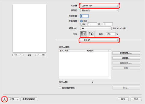 從電腦 (Mac OS) 傳送傳真