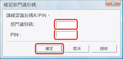輸入[部門識別碼]和[PIN]→按一下[確定]。