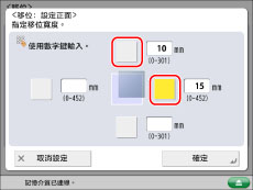 - (數字鍵)輸入正確的數值。也可以透過選擇[與正面相同]或[與正面相反]自動設定反面的移位數值。