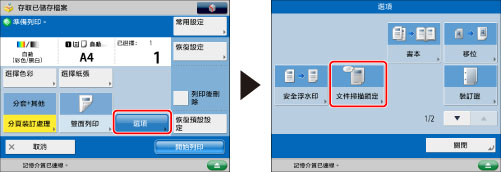 影印設定了[密碼認證]或[使用者認證]的文件時,使用首頁上的嵌入資訊進行認證。在下列情況下,工作會被取消: