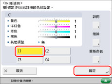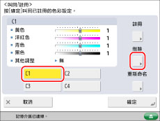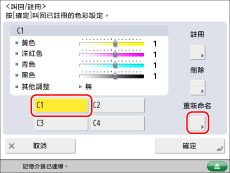 若沒有輸入任何字元就按[確定],則按鍵名稱會恢復為現行名稱(預設為C1到C4)。