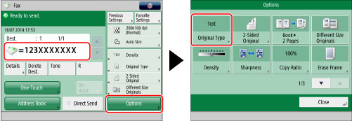 Specify the destination → press [Options] → [Original Type].