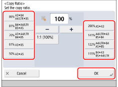 You can use preset zoom ratios to enlarge or reduce standard size originals to other standard sizes.
