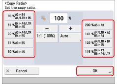 You can use preset copy (zoom) ratios to enlarge or reduce standard size originals to other standard sizes.