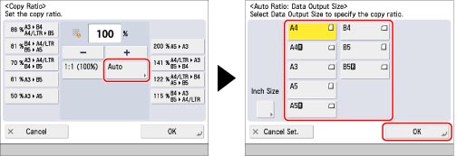 You can automatically enlarge or reduce an original to a specified paper size. The same zoom ratio is used for the horizontal and vertical axes.