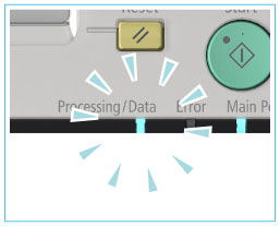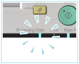 The Processing/Data indicator goes out when documents stored in memory are printed.