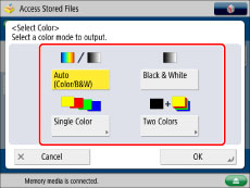 When printing CMYK files stored in mail boxes, only [Auto (Color/B&W)] can be selected. (To print black CMYK files, [Black & White] can also be specified.)