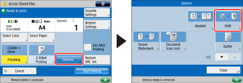 If you use the Shift mode, the original image may be partially cut off on the print, depending on the size of the selected file, the size of the print paper, and the amount of shift specified.