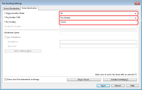 If you have set [Special] tab → [Security Settings] → [Confirm Fax Number/URI when Setting Destination], enter the fax number in [Confirm Fax Number]. For details, see the Help (see "Viewing Help").