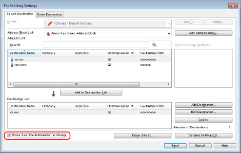 The number of destinations that you can send to at one time depends on the conditions under which the cover sheet has been attached. For details, view Help (see "Viewing Help").