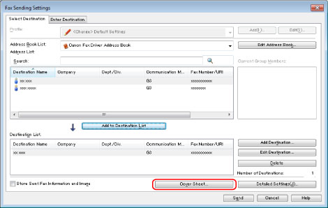 [Select Destination] → Click [Cover Sheet].