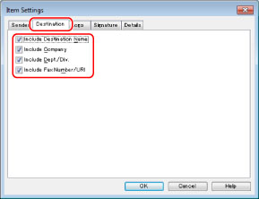 Click [Destination] → select items you want to print on the cover sheet regarding the destination.